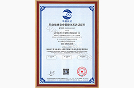 職業健康安全管理體系認證證書